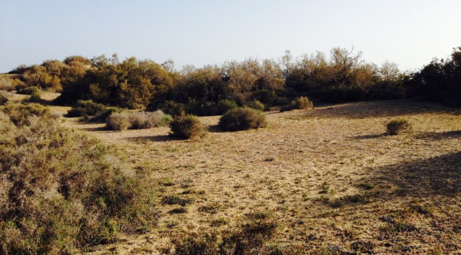 Today I am in Maspalomas again, without a scarf, and with no pressure to create any images. Or rather, with the pressure of creating some other kind of images. And I do have a scarf with me, although an ordinary one. I thought about it on the plane and realized that I could use a dark blue skirt and a thin dark blue silk scarf as my costume if I would like to experiment with something. And I actually did. The experience was rather confusing, though. I thought the dark blue might make a good contrast to the yellow dunes, and it did. But the long dress and the scarf whirling in the wind also made the image absurdly romantic, gothic and pathetic. I experimented with walking into the landscape and disappearing behind the dunes, but it looked rather awkward. Then I tried climbing up the steep slopes, and stopped midway when the effort was too much for me, and then just stood there, with my feet in the sand. This felt somehow meaningful, watching the sand slowly glide down the slope as a result of my movements and letting the wind do the job of moving my skirt and scarf. It felt dramatic, since it took some effort to remain immobile on the slope. Unfortunately the images did not look very interesting or beautiful. A small dark figure among the dunes was nice as an idea, but not so fascinating as an image. For the effort and movement to have some impact the camera should have been much closer. But then again the landscape would disappear into the background. At the moment I do not know what to do, but I will make a few more trials. Right now I am much more interested in the pieces of rubbish thrown in among the bushes or in the sand. As always I do first and think afterwards, or perhaps it is more fair to say that I let my unconscious self do the thinking.