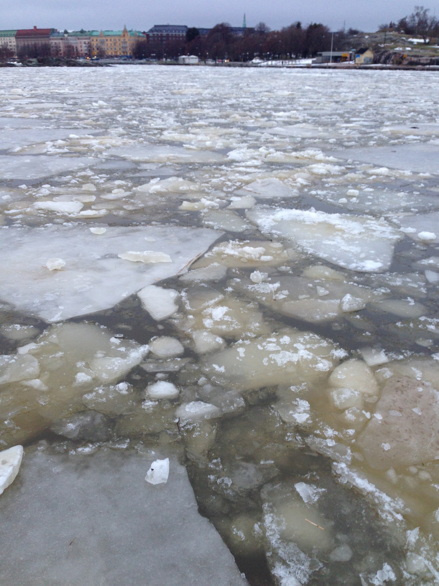 That was almost what happened. It was completely impossible to move through the ice in a small rowing boat. Luckily Saara came with her strong buster boat bringing her children home from the mainland, and agreed to try to take me across before nightfall. And the ride was exciting, to say the least. She brought me to the Ursula peer, since the skin of the sea seemed thinner in that direction. It was not possible to go around the floes; the soup was too thick for that. So she had to press the boat up on the floes, then back off if they did not break and try again. It was quite an achievement to get me ashore. And walking along the shore I saw her struggling back to her family on the island. I do admire her strength; what brave and tough woman she is.