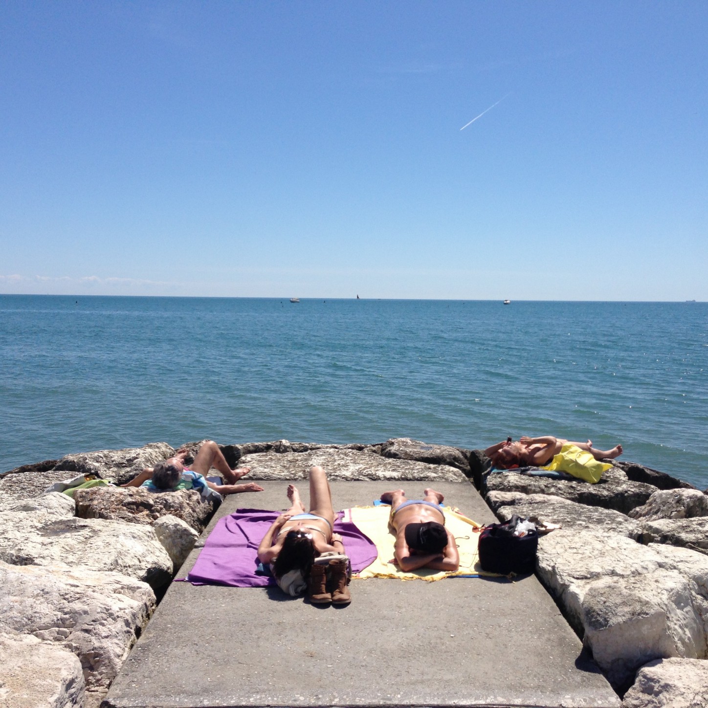The next day I made a new attempt, returned to the same “free beach”, walked out on the rocky pier where people were sunbathing and placed my tripod at the edge. Everything was fine, although a woman nearby was speaking on the phone, which irritated me at first, but then I realized that might make quite a fascinating soundscape.