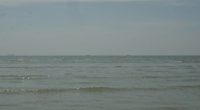 Ao Nang in the province of Krabi in Thailand is a crazy place to work “After Sugimoto”, or rather his “Seascapes” with water and sea in equal measure without any disturbing details, since the peculiarity, speciality and beauty of the landscape here consists of the karst islands rising up from the sea in the most weird formations. Moreover, the local long tail boats are dotting the sea. To look for an open and even, undisturbed horizon here seems rather funny. But that, too, is possible of course, since there is plenty of Andaman Sea to enjoy. I do not have my zoom lens with me, so it is not that easy to find a place with open horizon between the islands. What makes it even more difficult is the strong sunlight; it is hard to distinguish what is there, in reality, in the image, and what remains outside the frame. And although I walked to the more secluded, or let us say less popular beach, called Nopparat Thara Beach, there are still plenty of people around. I waited patiently for one couple to get up from the water, and put my tripod next to the waterline. Funny enough a local woman, or a semi local tourist, perhaps chinese or japanese, came to take a photo with her phone next to my tripod, as if trying to understand what I was recording. Her ‘thank you’ is audible at the end of the second take.
