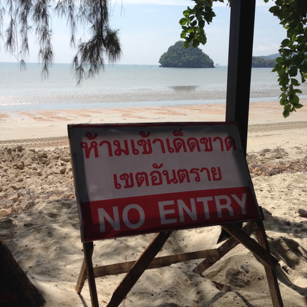 I walked along the beach until the gate to the national park at the end, and marvelled at the change of the landscape at low tide. There were plenty of warning signs declaring ‘NO ENTRY’ or ‘CONSTRUCTION’ and then also some information about the low tide, when you could easily walk to the small islands near the shore and also advice what to do if attacked by poisonous jellyfish.
