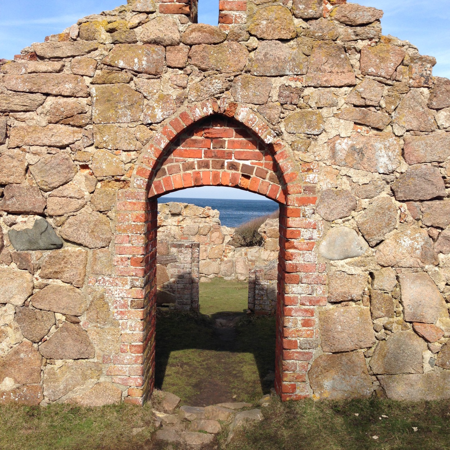 Arvelin että polku veisi minut takaisin lähtöpaikkaan kukkulan ylitse, ja tarkistettuani asian kartalta ipadistani lähdin seikkailuun, tai siltä se ainakin tuntui, sillä nyt ei ollut enää tienviittoja neuvomassa. Sen sijaan alkumatkassa oli oransseja muovinauhoja, joilla reitti oli merkitty. Useampikin juoksija tuli vastaan, ehkä nyt oli meneillään joku kuntotempaus. Kartan avulla löysin helposti takaisin lähtöruutuun Sandvigiin, ja pidin lounastauon. Sen jälkeen oli vuorossa Hammershusin rauniot, jonne tienviitaan mukaan oli vain kaksi kilometria. Eli maantielle, siis. Matkalla näin viitan, polku Allingeen, ja päätin, että menisin sitä kautta takaisin. Hammershus oli vaikuttava paikka, kylttien mukaan pohjoismaiden suurin linnanraunio, ja miellyttävää oli myös se, ettei missään vaiheessa tarvittu pääsylippua. Ehkä ihmisen palkkaaminen myymään ja tarkistamaan liput tulisi kalliimmaksi, kuin kitä lipputuloilla saisi kasaan.