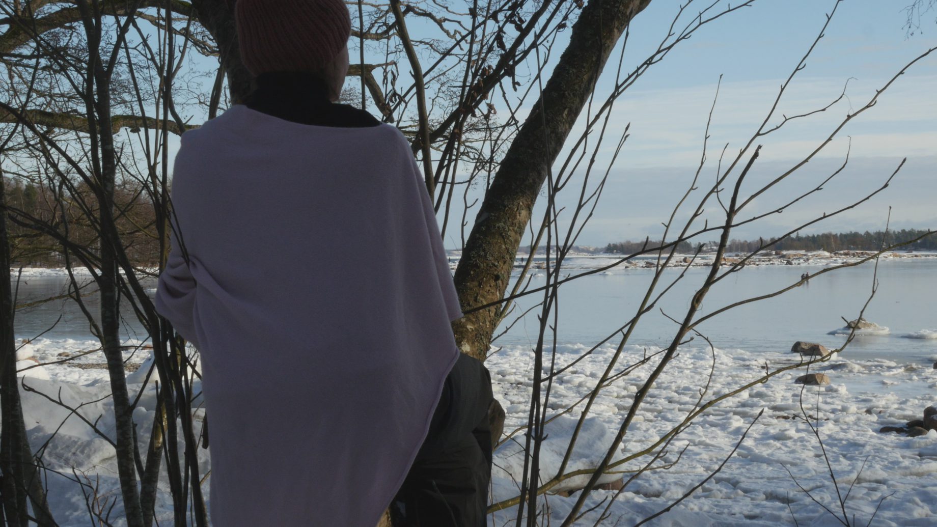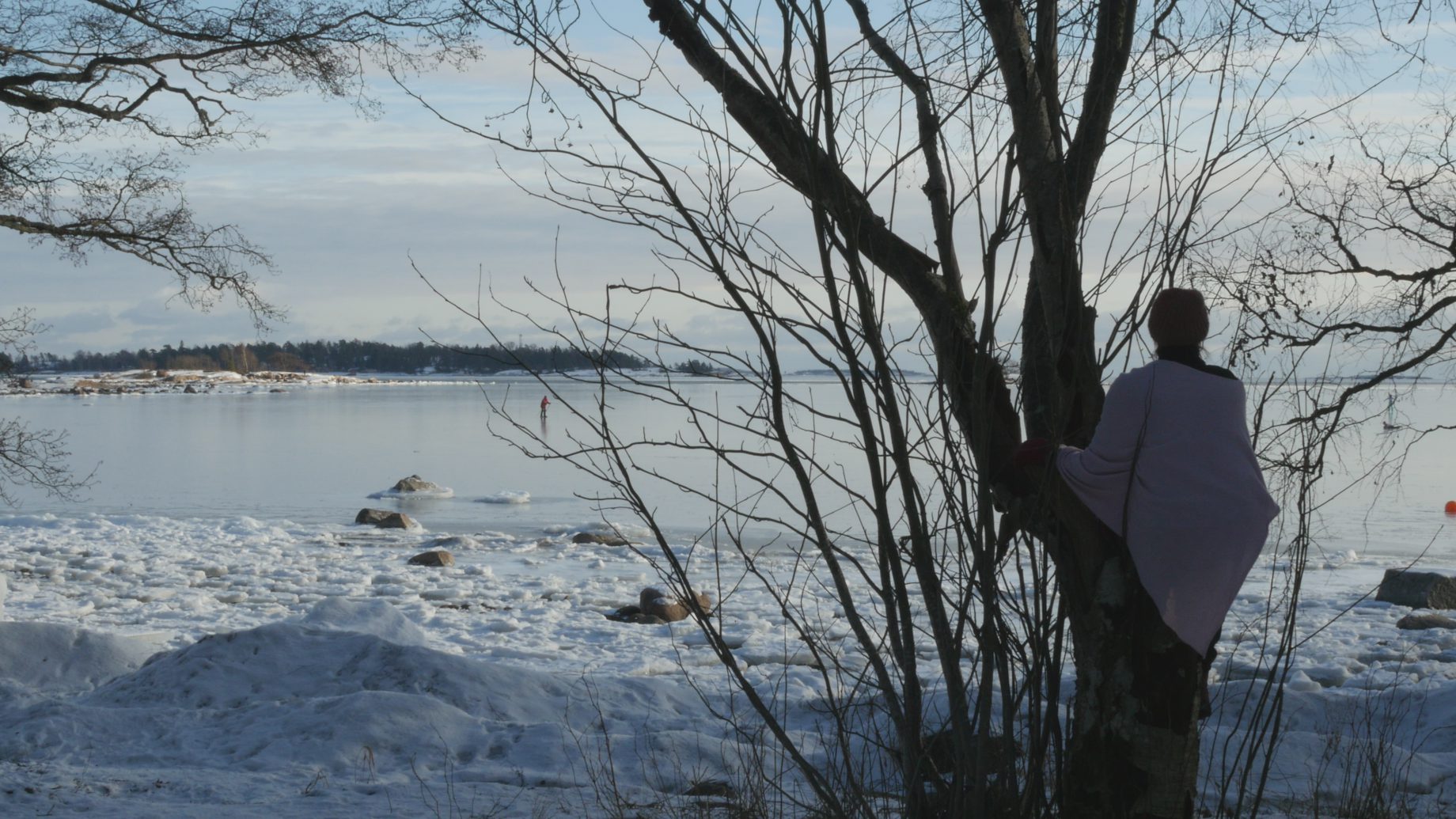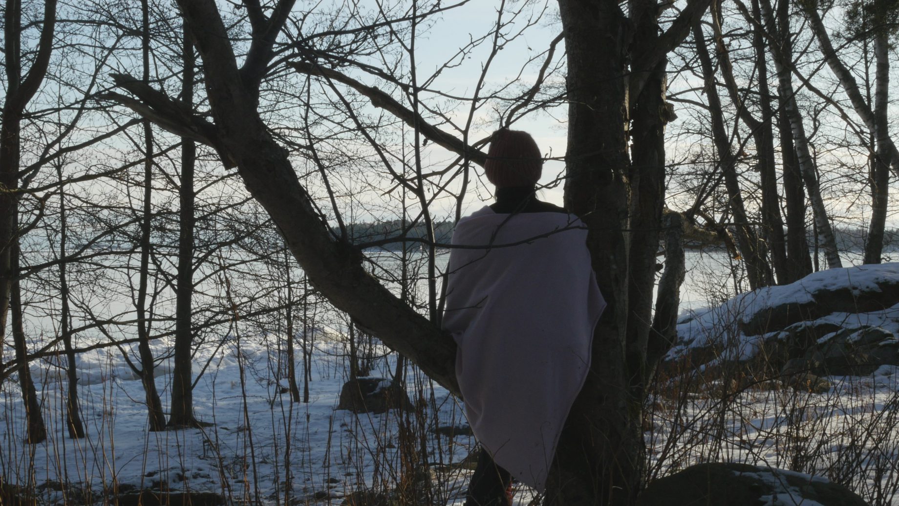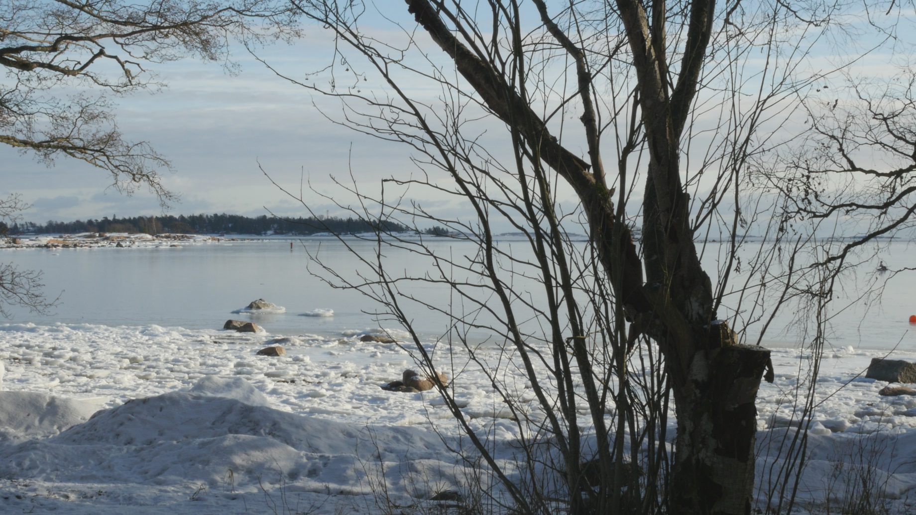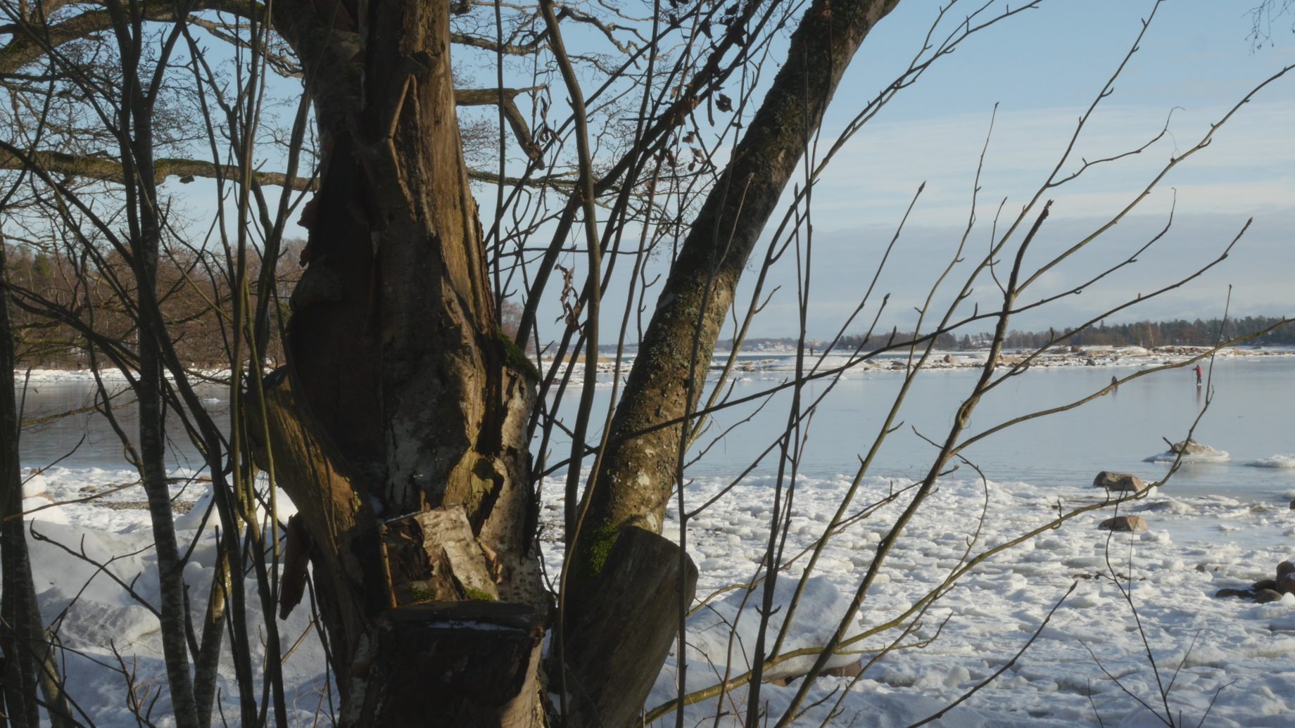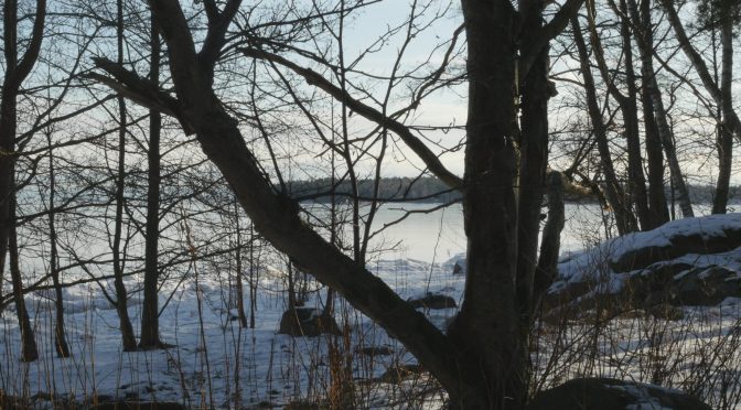 And now the memory card was full, of course, so only the very beginning of the session was recorded. There was nothing else to do but to clean the card from old stuff and sit on the branch one more time. During my first sitting a whole group of ice skaters passed by, and I wondered whether they would be visible in the image. During the second sitting I heard some strange banging noice and realised only later that it was the sound of a car door. A newly wedded couple had arrived on the shore to take their wedding photo. I left them smiling in front of the ice and snow and hurried back to the city centre. – When I looked at the material in the evening I realized the images were all rather bland and grey and wondered whether I should visit the tree once more …