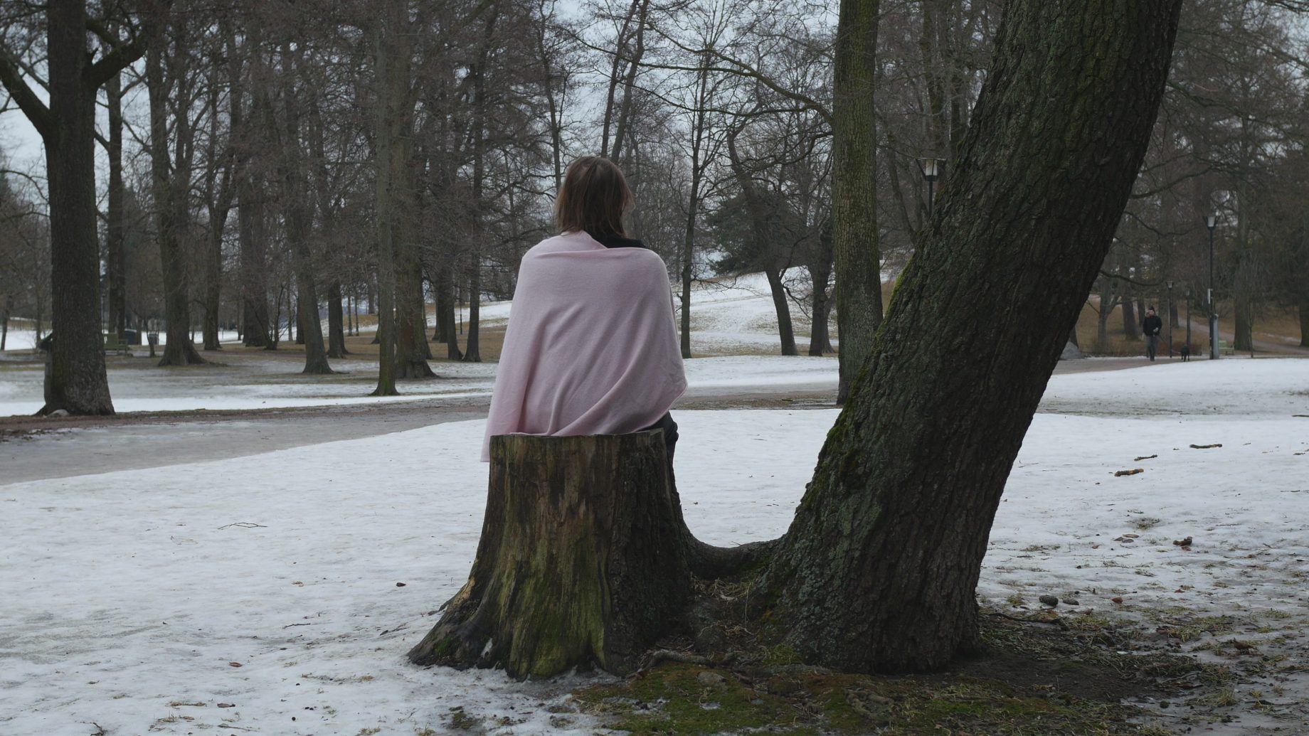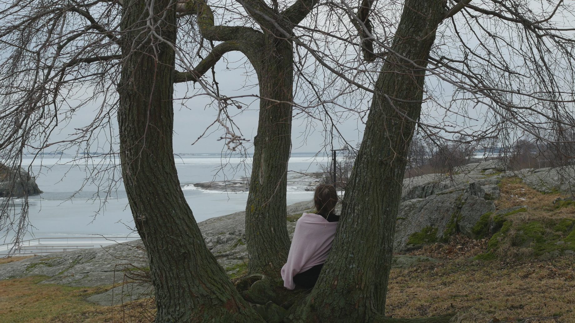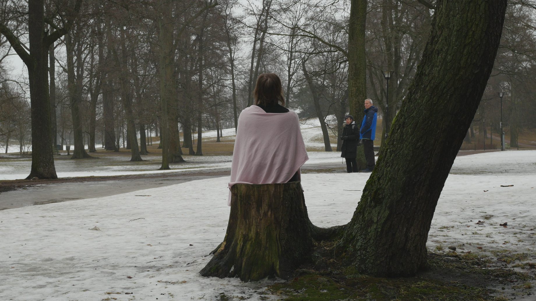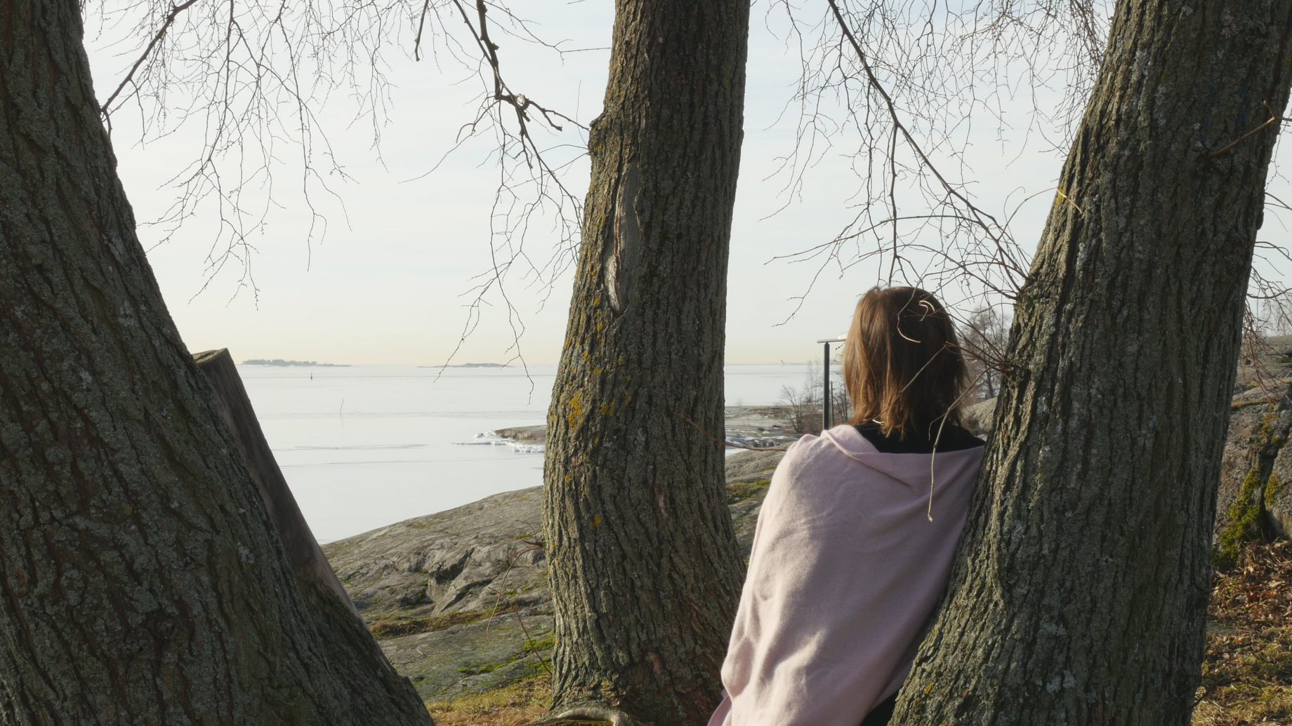 Visiting my tree partners in Kaivopuisto on Wednesday morning was a delight. The sun was shining from a bright sky and felt actually warm; there was absolutely no wind, so sitting on the tree trunk looking at the icecovered sea was pure pleasure. The sun was so strong I almost had to close my eyes.