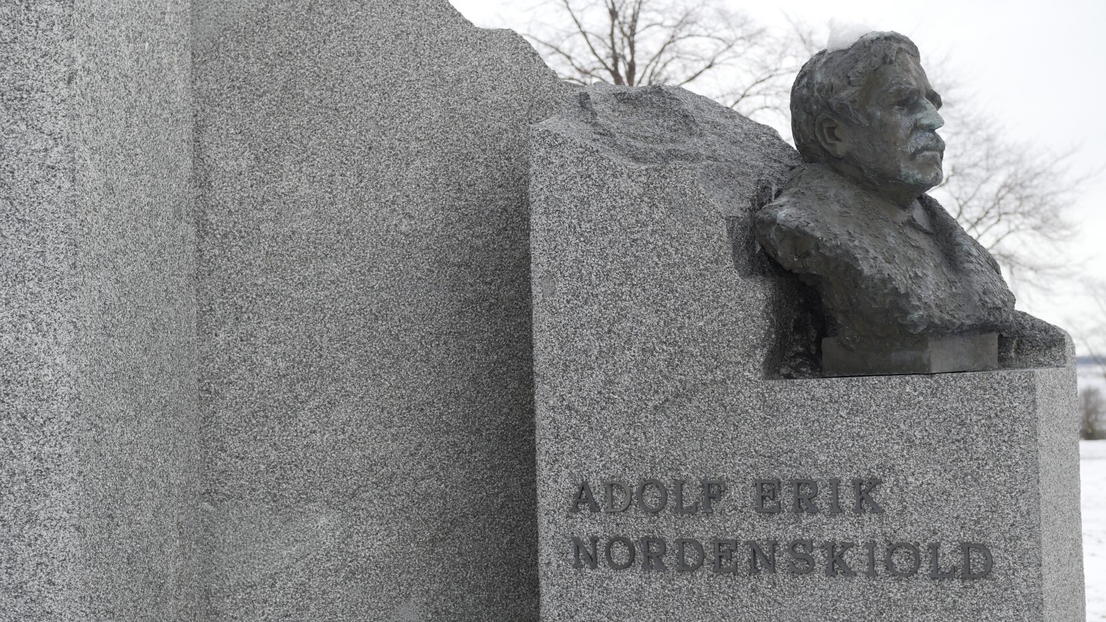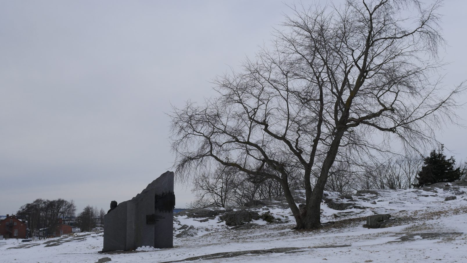 While entering the park today I noticed, for some reason, the monument next to the tree, which I usually ignore. A view from higher on the slope reveals the granite slabs standing quite near to it. They commemorate Adolf Erik Nordenskiöld (1832-1901) who was an explorer and scientist, the first one to sail the whole Northeast passage, that is, along the north coast of Asia. He was born in Finland but had to move to Sweden because of his views on Russian politics. The monument is designed by Heikki Häiväoja, and you find more information about it here.