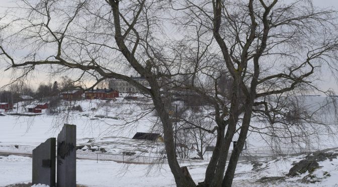 On Saturday, today, I went out a little later, around noon, and the sun was not so bright today, shining momentarily from behind the clouds. There was not much wind, but it was could enough for me to keep my cap on. While sitting and looking at the small Uuninsuu strait I can observe the changes in the ice cover from day to day. Although the sea is mostly open further out, there is much ice on the northeastern side of Harakka Island. But I would not walk across the ice now, although I guess it would still be possible. And if this chilly weather continues it will probably take time before the ice disappears. Soon it is time for thaw. We call it “kelirikko” in Finnish, broken weather or broken road conditions.