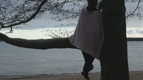 I had prepared a small rope to tie around the stool, so I could get hold of it and throw it out of sight, but that proved unnecessary. It was fairly easy to frame the image in such a manner that the stool below the branch was cropped out of sight. The first version was more of a close up, with my head cropped out of sight, so I tried a slightly wider framing. That session was recorded only in part; the memory card was full! How stupid of me not to cheque that… so I made the second version once again, and by now it was already quite late. At some point it started to rain, and the drops looked nice on the sea, but the rain subsided before it had really begun. By the time I walked back to the busstop through the woods it was getting cold; I was nevertheless happy to have performed with the alder, and thought I could always return in case the material proved useless. At the moment of writing this I have not edited the works, but only looked at the material, which seemed allright.