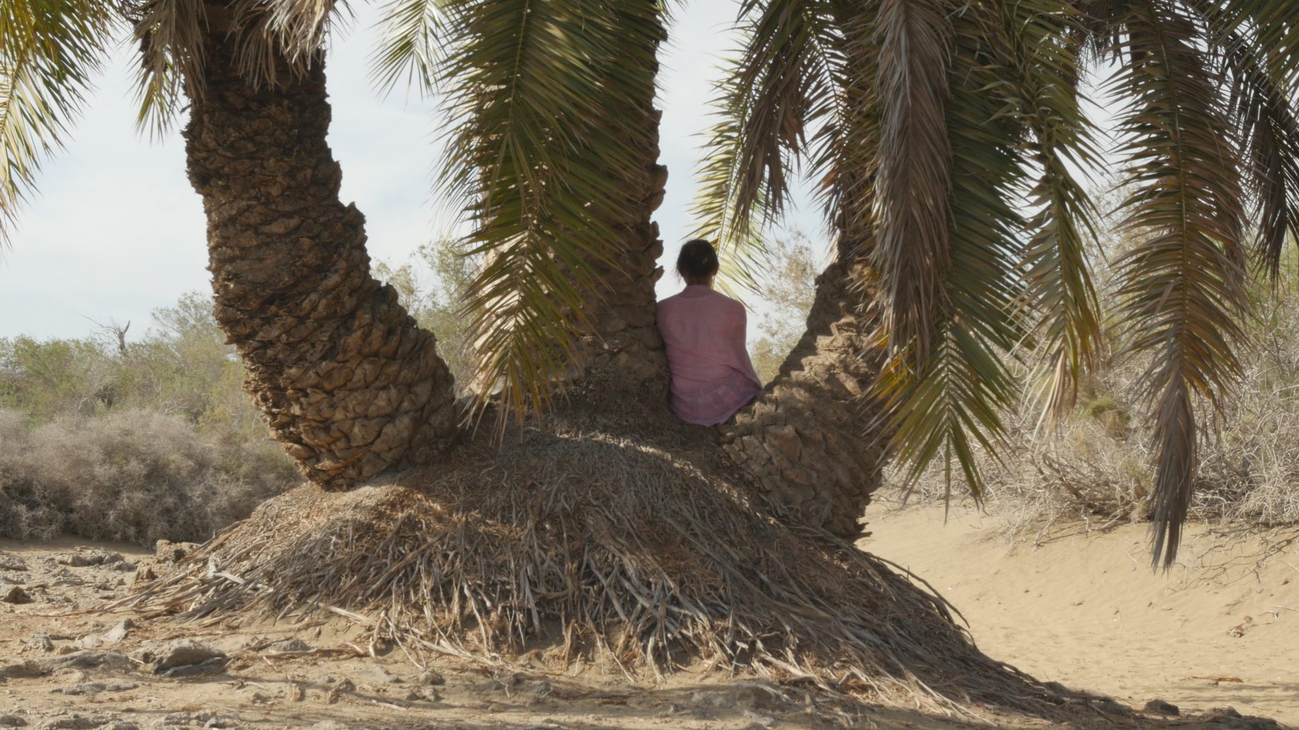 Olin tyytyväinen pari päivää sitten kuvaamaani pieneen videoon Tamariskipuun kanssa, josta olen kirjoittanut englanniksi, (katso täältä) mutta päätin silti lähteä vielä kerran Maspalomaksen dyyneille kameran ja jalustan kanssa. Ihmisiä oli liikkeellä paljon, osa jo palailemassa rannalta vaikka aurinko oli vielä korkealla, kun kuljeskelin kasvillisuuden muodostamien mäkien ja mättäiden lomassa, pysähtelin epäröiden muutamien ryteikköjen luona mutta jatkoin silti matkaani. Yhdellä tasaisemmista paikoista katsahdin takavasemmalle ja näin pyöreän, paksun kolmihaaraisen palmun joka oli jotenkin huomiotaherättävä ilmestys suhteessa ympäröivään risukkoon. Sen juuret muodostivat korokkeen ja kahden rungon välissä oli sopiva istumapaikka. En ollut ensimmäinen siinä istunut, jalanjäljistä ja tupakantumpeista päätellen. Asettelin kameran jalustalle selkäni taakse, kassini hiekalle eteeni kameran näkymättömiin ja kävin istumaan. Ihmisiä kulki ohitse hiukan etäämpänä ja takaakin kuului ohikulkijoiden ääniä, mutta toivoin että he antaisivat kameran olla, ja että tuuli ei sitä kaataisi tällä kertaa. Pohdin vielä toisen kuvan tekemistä joko lähempää tai sitten edempää, niin että palmun tuuhea lehvistö pääsisi kuvaan mukaan, mutta en löytänyt sopivaa kuvakulmaa ja paikkaa maastosta, joten tyydyin ensimmäiseen versioon ja palasin takaisin. Seuraavana aamuna editoin materiaalista pienen staattisen videon (6 min 38 sec) jolla annoin nimeksi yksinkertaisesti With the Palm Tree. Vaikka tuuli paukkui mikrofonissa en silti nimennyt sitä With a Palm Tree in the Wind kuten Tamariskipuun kanssa tekemääni videota, sillä tuuli tuntui niin kovin heppoiselta jykevään palmuun nähden. Mikä vastakohta Tamariskille! Hento ja käppyräinen puu tai pensas verrattuna tukevaan kolmihaaraiseen paksukaarnaiseen vanhukseen. Vaikkei palmu ole kovin korkea se on varmasti minua vanhempi, kanarian palmut Phoenix Canariensis kasvavat kuulemma hitaasti. Tyydyin stillkuvaan, videolta napaamani lisäksi: