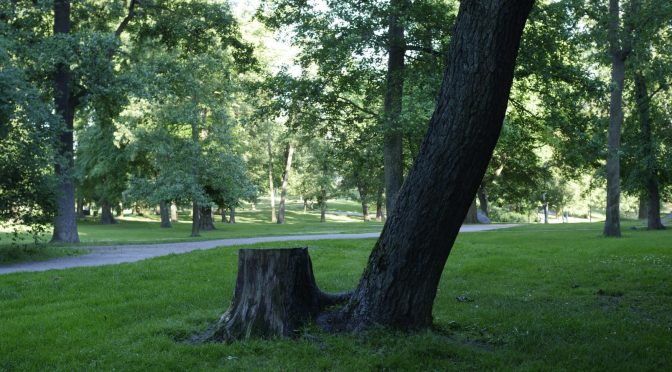 Kahden viikon tauon jälkeen puisto oli pääosin ennallaan, ja jalavakin oli ihan kunnossa, vaikka lehdistä näkyi, että joku ötökkä sitä jäytää. Uutta olivat kallioilla loikoilevat ihmiset: oliko tänään todella ollut helle? Pääsin paikalle vasta illalla, koska lento Sao Paulosta, Frankfurtin kautta, laskeutui vasta viiden jälkeen. Sinänsä oli hauskaa vaihtelua vierailla puiden luona illalla, hiukan eri tunnelma tietysti, mutta käytännössä muuta vaihtoehtoa ei ollut, sillä lähden jo viiden maissa huomen aamulla Pohjoisnorjaan. Hullua reissaamista, kieltämättä, mutta kutsu puhumaan performanssitaiteilijoiden residenssitapahtumassa Lofooteilla on tilaisuus johon ei voi olla tarttumatta. Ja täytyihän puiden luoda ehtiä vierailemaan!
