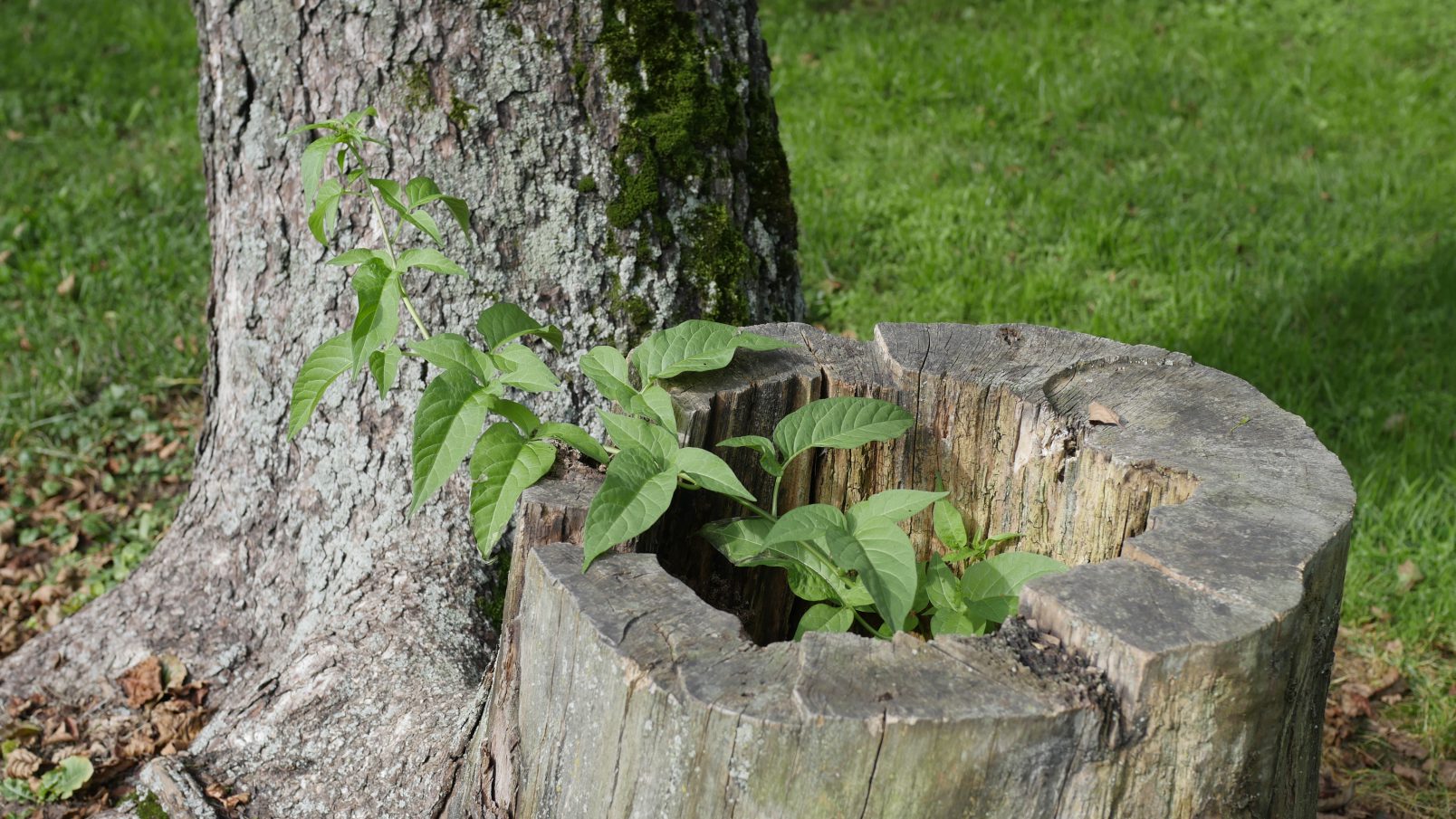 The plant growing from the hollow stub of the alder has gained in vigour and is now reaching far beyond its cosy base (see image above, and below).