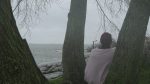 Lauantai-aamuna tarjoutui ensimmäinen tilaisuus vierailla puiden luona tällä viikolla. Viime päivien ensi-lumi oli kadonnut, ainakin Kaivopuistosta, ja taivaalta tihkui vettä. Tuuli oli navakka ja kylmä, sadepisarat tuntuivat jäisiltä. Aloitin tyhjentämällä soutuveneeni ja sen tehtyäni mietin vielä hetken kääntyisinkö takaisin kotia kohti, mutta järkeilin, että samalla vaivalla voisin yhtä hyvin vierailla puiden luona, kun kerran kannoin kameraa mukanani. Istuessani jalavan juurella tajusin, että nyt oli alkanut uusi aika: nautinnon päivistä oltiin siirrytty sietämisen aikaan, talvikauteen. Istuin pipo päässä ja hytisin, vaikka olin sentään tajunnut pukea kunnolliset vedenpitävät kuorihousut ja kumisaappaat. Ilokseni kamerajalusta pysyi pystyssä, mutta tuulen voimasta kamera oli siirtynyt sivusuunnassa (katso kuva yllä). Ei auttanut muu kuin istuutua uudelleen, ja sitten vielä kerran lähikuvaa varten. Vesipisarat sumensivat linssin, mutta auttoi kun pyyhin pahimmat vedet pois. Kävellessäni kallion yli lepän luokse, tietäen, että se olisi ainakin osittain tuulen suojassa, huvitin itseäni ajatuksella, että tällä kelillä saisin ainakin olla puistossa omassa rauhassani. Yksi ainut koiran taluttaja ilmestyi kuvaan istuessani kannolla.