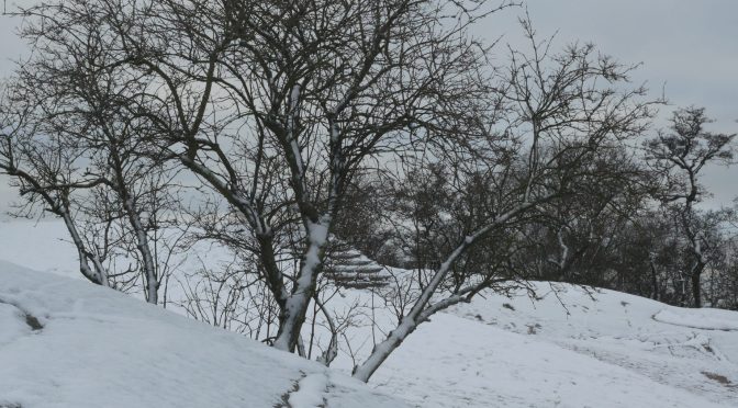 For the last performance in my Tree Calendar (working title) I planned to look for an elder somewhere in the eastern part of Helsinki, which I hardly know compared to the central or western areas. Searching on-line I found a mention of an elder (Sambucus nigra) in Kivikko near a dog park, and aimed to go there after visiting the trees in Kaivopuisto which I have visited regularly this year. While there, I remembered the red-berried elder (Sambucus racemosa) up on the hill, which i have passed so many times, and decided to try if I could find a suitable framing of that one. The day was rather cold, which meant that finally the snow stayed on the ground, instead of immediately turning into water. The landscape looked great, and everybody else seemed to have notices that, too. The park was full of people jogging or walking their dogs, enjoying the fresh air after days of rain. And they all wanted to follow the path next to the elder, so they ended in my video. The passers-by fire prominently in the images, because I am – for once – barely visible sitting on the low branches of the elder, partly covered by the cliff. I made an other session standing next to the elder, leaning on it lightly, just in case. Both videos, Elder in December 1 (13 min. 38 sec.) and Elder in December 2 (8 min. 59 sec.) are available on the Research Catalogue, here.