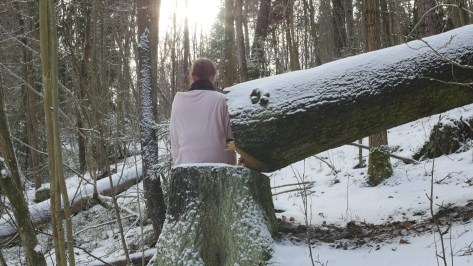 Since sitting in a tree, or on a tree or with a tree is the main action I have been engaged with during the first year of my artistic research project Performing with plants, which I am now continuing with in Stockholm, that seemed like an easy choice to go on with. But of course you want to find the right partner if you are going to commit yourself to a collaboration for a whole year. And nothing seemed really inviting or seducing or inspiring in any way. To simply get started I decided to make a try-out, and to begin with the stub of a recently felled old spruce, which had caught my eye during my walks, to sit on the stub as my first stop, and to continue from there. Moreover, I thought I would perhaps make do with some of the small pines on the hill right next to the building, since they were growing conveniently right there. So, the day before new moon I took my camera and chose these four stops.