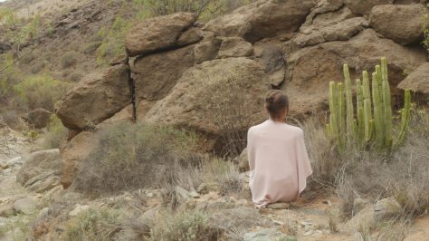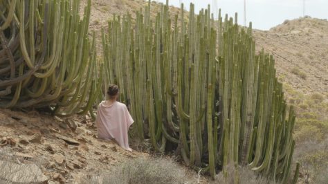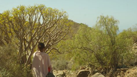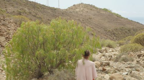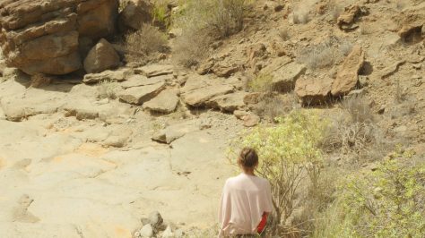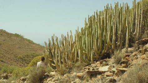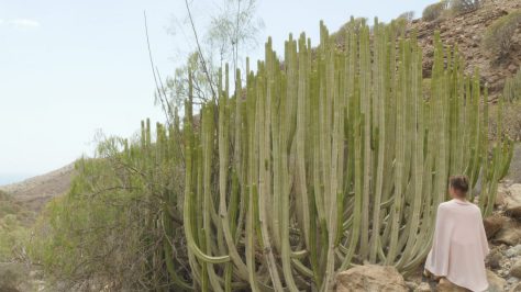 After reading a nice little book by Jeffrey T. Nealon, Plant Theory – Biopower and Vegetable Life (2016), which consists of a preface, four chapters (on Foucault, Aristotle & Heidegger, Derrida, Deleuze & Guattari and their ideas on vegetation), and a coda What difference does it make? I decided it was time to get out for a change. On the last day of March I followed a walking path on the slopes of the hills east of Puerto Rico on Gran Canaria in order to find some shrubs to sit with. And there were indeed plenty of them. At the bottom of the small valley, where the path crossed something that at some point might have been the bed of a brook I could get off the path, both above and beneath it, and made some attempts at performing for camera. The first image, above the path, is nice as a view, but there I placed myself much too close to the camera and become the main focus of attention: