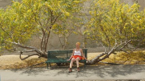 Walking down the riverbed I decided I might make one more trip tomorrow to sit with some of the Balos I passed on the way. And in the park on the way back I posed on a bench under a Mimosa tree in order to remind myself to enjoy the places purposely made for humans, too, instead of always insisting on making everything so tiresome and exhausting and unnecessarily complicated: