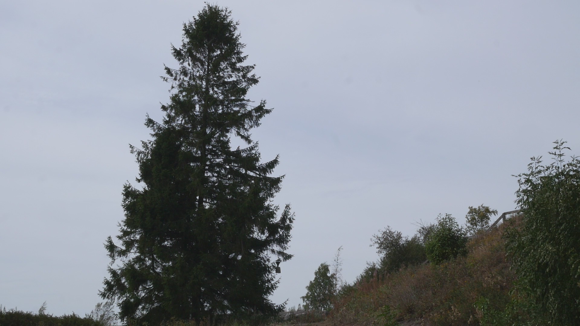 The idea was to insert all three images into one larger image of the spruce in full size. I made one version first, but the following day, while walking around, I noticed that a full portrait of the spruce might be easier from another angle.