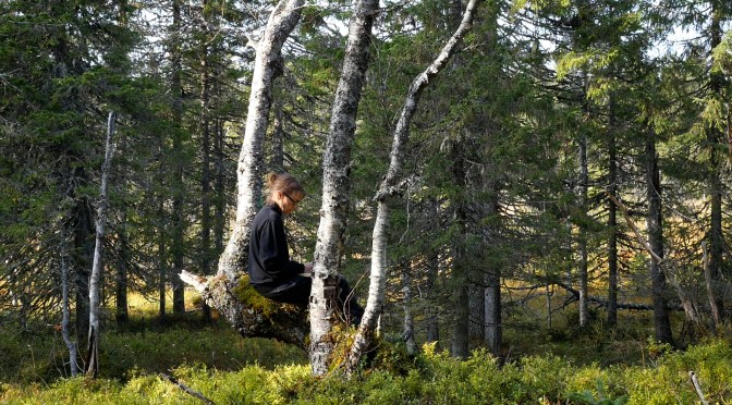 Så heter utställningen på galleri Forum Box i Helsingfors (11.2.-6.3.2022), där jag har “balkongen” (parvi) till mitt förfogande, och dessutom det lilla Mediabox där man kan visa ett arbete, i det här falled Dear Deceased (6 min 26 sec), ett brev på engelska till en död gran, som nu finns på AV-arkivet, här. Det huvudsakliga arbetet jag ville visa är Day with Old Tjikko 1 (17 min 45 sec), dagen med den uråldriga granen på Fulufjället, inspelad i maj 2019. Alla andra videoarbeten som är med är gjorda i september 2020 i Mustarinda residenset i Hyrynsalmi, Kajanaland, inklusive den på bilden här ovan. Kära Björk – Dear Spruce (5 min 50 sec) består av ett brev skrivet till björken jag sitter på, och uppläst av mig på svenska med den engelska översättningen som text scroll. Namnet på utställningen liknar namnet på projektet som den är en del av, Möten med betydande och obetydliga träd.