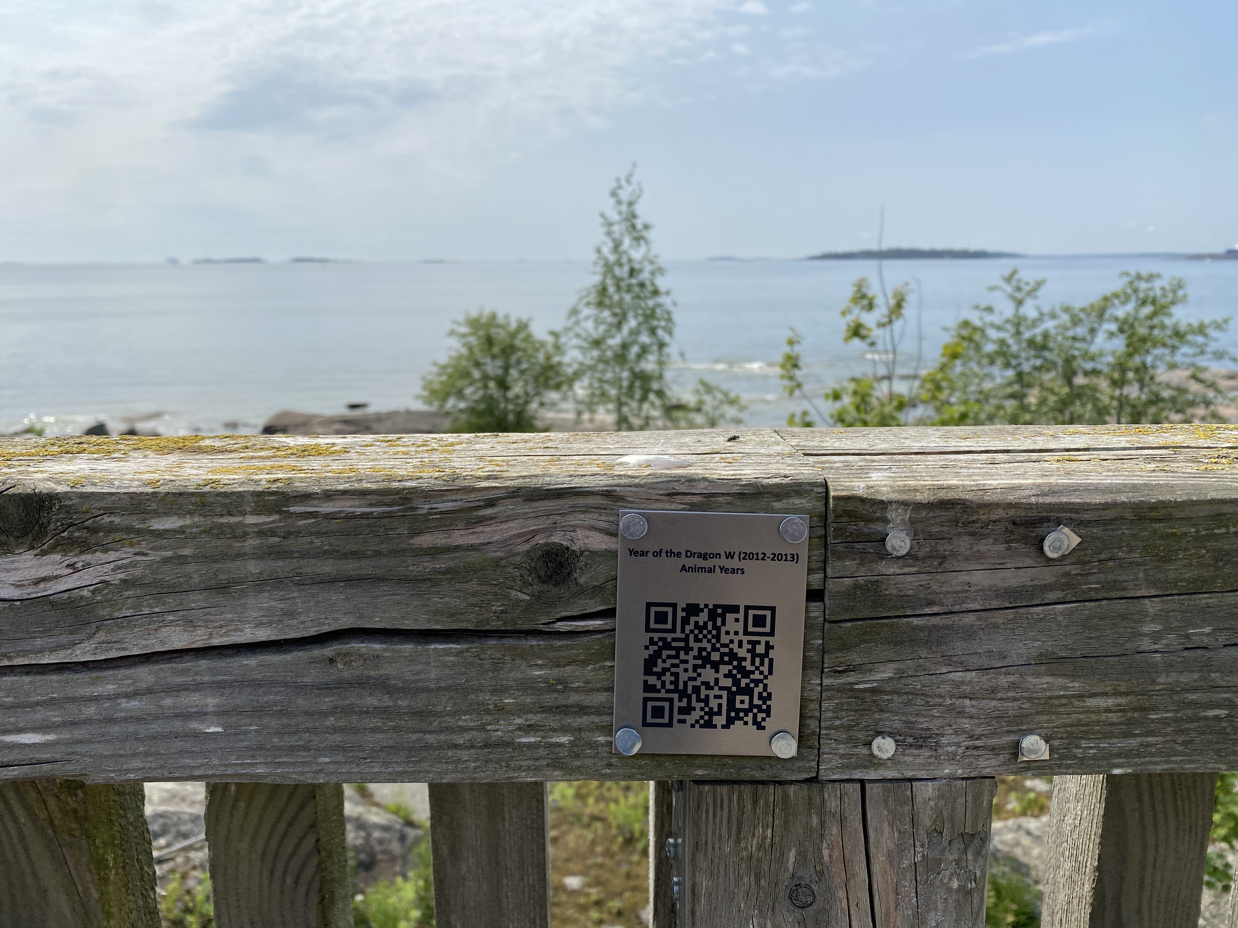 Now they work again, the QR codes linking to a selection of videos from Animal Years performed and recorded on Harakka Island 2002-2014. They are in the same places as before. Some of them are easy to spot, others are harder to find. Here are close-ups of the sites, in the order they were performed: