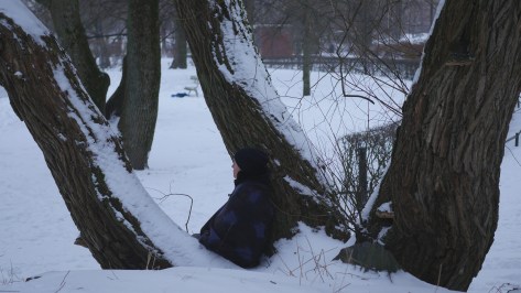 To celebrate staying alive for seventy years I decided to return to an old work – Sitting on a Birch – which I also call My fiftieth Year from 2006, when I travelled to Koivumäki every Sunday and sat on the outgrowth of a birch there. And decided to make it easier and choose a tree to sit on in my vicinity, one in Stockholm and one in Helsinki. The oak (probably an oak) I lean on the 10th January 2026 in the image above is growing on Fredhäll cliffs in Kungsholmen and the willow (probably a willow) I sit on the 17th January 2026, in the image below, is growing in the southwestern corner of Kaivopuisto park. The time is Saturday, if possible, Saturnus’ day. The blue and grey scarf is the same. If all goes well this will become two video works or perhaps a two-channel installation.
