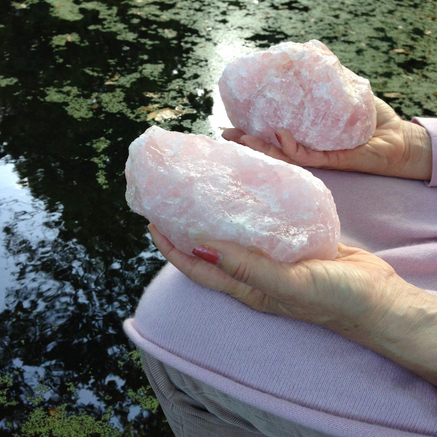 Performing for camera can have its drawbacks, unless you check and double-check and then do it once more. This experience was confirmed once again in Exeter this weekend. I was participating in the third seminar organized by the Rock-Body project, see rock-body website , an exciting interdisciplinary mixture of scholars and artists from various disciplines, including geographers, geologists, performance studies scholars and philosophers. As part of this event dancer and choreographer Paula Kramer planned to create a site specific dance piece, eventually together with David Paton and Carolyn Deby, who invited me to join in. I happily agreed to sit somewhere with a rock in my lap, as Carolyn suggested. I thought I could sit immobile in the foreground watching them, as it were. When I saw the chosen site, under a huge old oak tree by a pond, where they already had placed the rocks they would work with, it was obvious that the only place to sit was at the piece of rock at the edge of the pond, in the background. I had brought with me two lumps of rose quartz that I had at home, because I expected that it might be hard to find “feral” rocks of a suitable size in the city. I noticed them at home when returning from the previous workshop in Penryn and connected them with the image I made there, due to their colour. In the morning after the seminar in Penryn I sat on the shore in Falmouth with a pale pink scarf in the rain and made a short video piece that I called Body on the Rocks. (See blog post) Of course I wanted to make a sequel with Rocks on the Body using the same scarf. And this I could somehow do based on the image to be created live during the performance. In the video the focus would be on the rocks in my hands. I was not sure if I would find the time to do it, so I asked Carolyn to take some snapshots with my phone in order to have some documentation. And they remain the sharpest images of those two pieces of rose quartz: