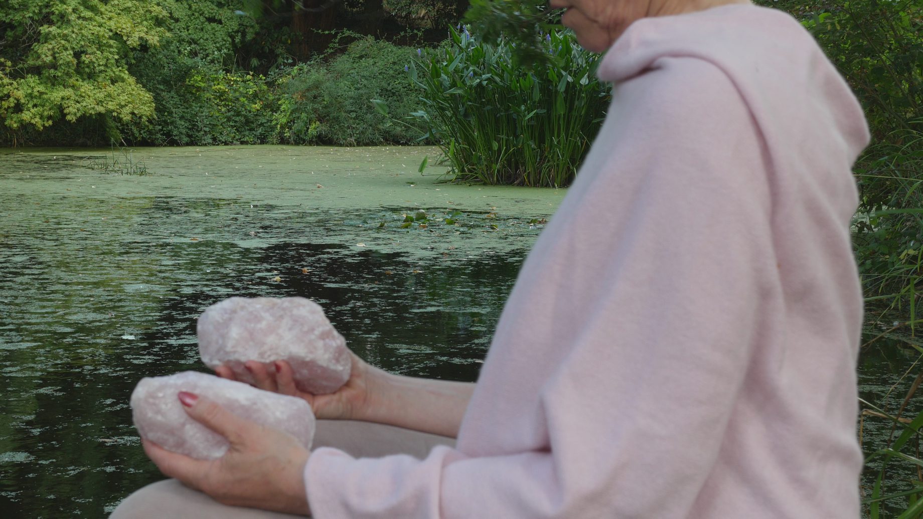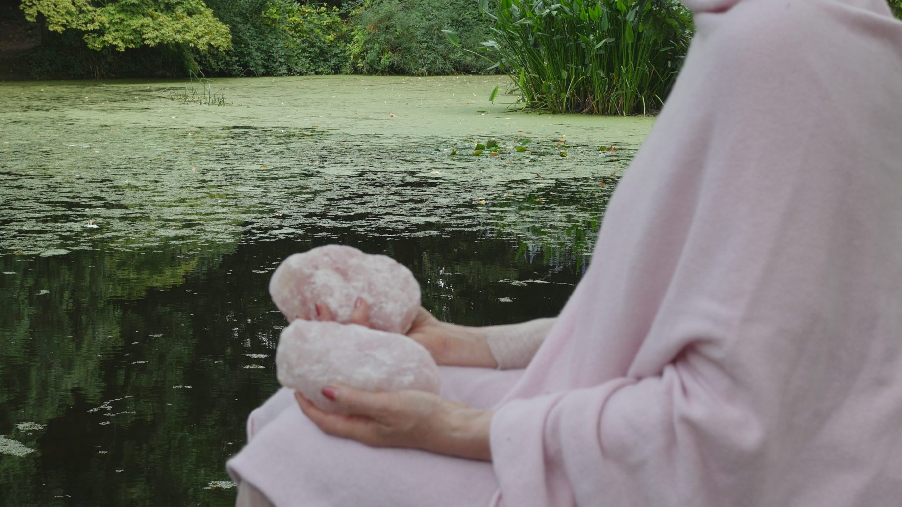 I decided to make a new attempt just before the actual performance, and then to remove the camera and the tripod before the audience arrived. And that is exactly what I did, although the session was rather short, 100 much shorter breaths. But of course there was neither raindrops on the surface of the pond or sun glistening on the quartz in my hands this time. Even the camera angle seemed less interesting, although that might be my imagination.