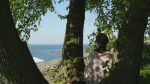 10 am (or a few minutes before) – grey, grey, grey. Wind from the north, no sun any longer, half an hour before high tide, the top of the rock near the shore is still visible above water. No traffic on the road, but far away the sound of a motor boat heading out; I can see it as a small dot. Approximately three minutes with the tree is enough, I assume. There is already a path across the meadow formed by my repeated comings and goings between the camera and the tree. For a moment I think I should try to walk outside the frame to keep the grass intact in the image, but decide to let it be. Before I go to stand with the birch I take a few still images of it. And then, afterwards, I only turn the camera and the microphone off and leave them standing on the tripod out there on the shore. Hopefully they will not attract the interest of seagulls or other birds.