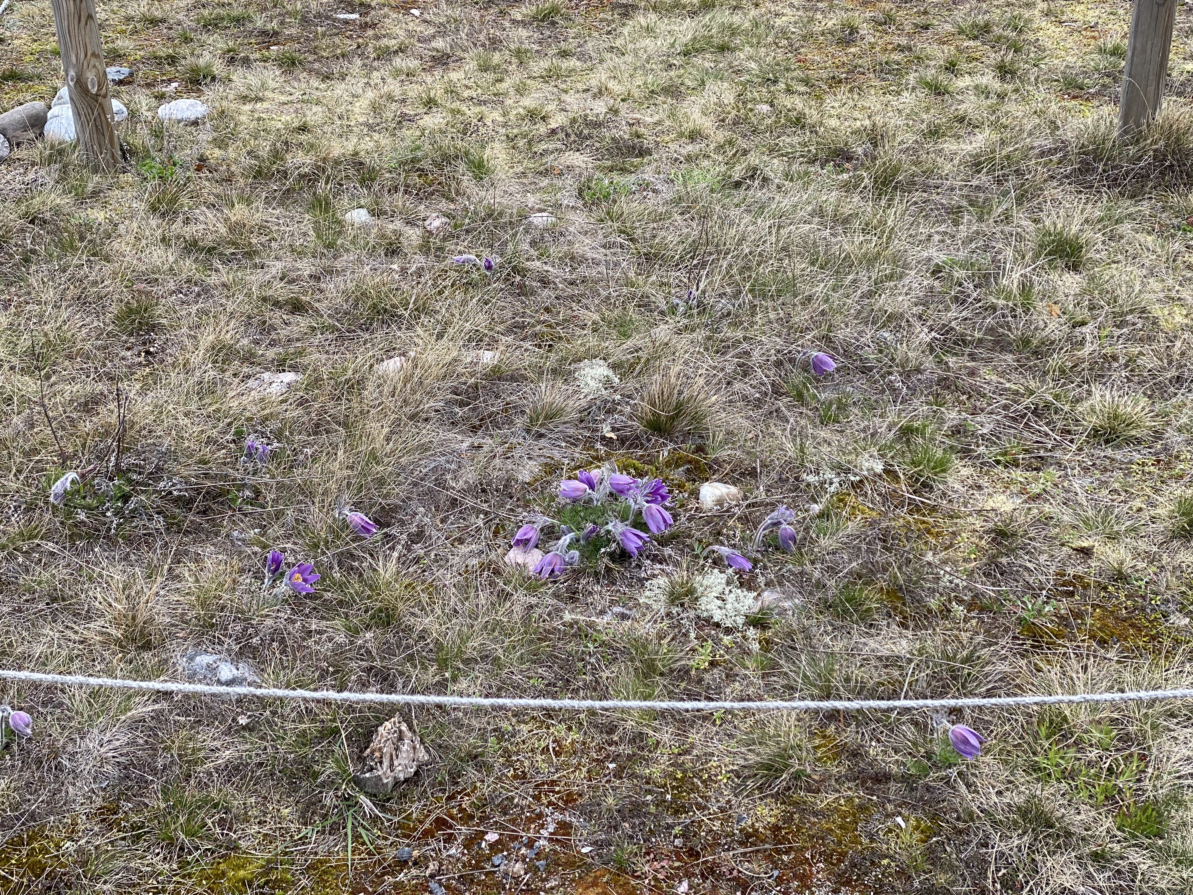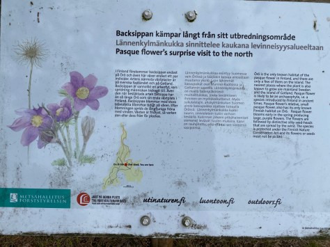 A week in Örö after a long break – I was here last time at the end of February – is the perfect way to celebrate May and mothers’ day and to get some work done with the pines. When arriving I suddenly remembered the Pasque flowers (Anemone pulsatilla) whose only known habitat in Finland is supposed to be Örö. At least that is what a sign next to some fenced spots claimed. And yes, they were in full bloom, although bending in the chilly wind. There is some controversy whether they are extinct or not in Finland and which species of pulsatilla or anemones, “kylmänkukat”, actually have grown or grow here now.
