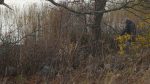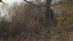 Olin varautunut sadesäähän pukemalla kurahousut ja sadehupparin, perinteisen pöheikköasuni. Ruohikossa valkoinen sadetakki osoittautui onnistuneeksi valinnaksi näkyvyyden kannalta. Siinä missä Kirsi sulautui sinertävässä vaatetuksessaan maisemaan minun valkoinen muovivaatteeni paistaa ruohikon keskeltä kuin kalpes kummajainen.