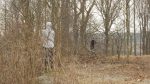 Pehmeä pikkupakkanen, lumen peittämä maa ja puolipilvinen sää tarjosivat erinomaiset olosuhteet ”pyöriskellä pöheikössä”. Sovimme tapaamisen Sibeliusmonumentin luona tarkoituksenamme lähteä sieltä rantaan päin etsimään sopivaa pusikkoa tai muuta joutomaata. Aivan monumentin vieressä oli kuitenkin houkuttelevan näköinen matalien käppyrämäntyjen muodostama ryteikkö. Ensin arvelimme sitä liian siistiksi ja esteettiseksi, kuin japanilaisittain sommitelluksi, mutta jo pikaisen tutustumisen jälkeen se osoittautui maagiseksi miniatyyrimaailmaksi. Mäntyjen rungot ja oksat taipuivat maata myöten muodostaen erinomaisia loikoilu- venyttely- ja kiipeilypaikkoja. Paksunpehmeä lumi peitti oksat ja neulastupsut ja luultavasti myös ryteikön suojiin jääneet roskat. Vain yksi muovipussi roikkui näkyvillä oksantyngässä ja sekin osin lumen peitossa. Minimännikön sisässä oli oma maailmansa, jossa tunsi olevansa omassa rauhassaan. Vain aukealla metsikön ulkopuolella törröttävä kamerajalusta ja kassit sen luona paljastivat, että tässä pensaikossa oli jotakin tekeillä. Tällä kertaa touhusimme kumpikin omiamme, Kirsi Heimonen ja minä, ehkä koska männynoksat toimivat eristyksenä joka suuntaan. Jälkeenpäin keskustelimme kokemuksesta hetken ja totesimme, että paikka poikkesi useimmista aiemmistä muun muassa yhtenäisyytensä vuoksi. Täällä oli pelkkiä mäntyjä, ja se teki tunnelmasta rauhallisen, koska mäntyihin yhdistyy myös kulttuurinen ajatus terveellisyydestä, selkeydestä ja puhtaudesta, jota lumi vielä vahvisti. Hetken männyn oksilla kömmiskeltyään ja saatuaan niiltä sopivasti lunta silmilleen, tunsi kokeneensa jonkinlaisen pikavirkistäytymisen. Outo paikka! Videolta napatuista stillkuvista näkee, että männikkö oli yllättävän tiivis: